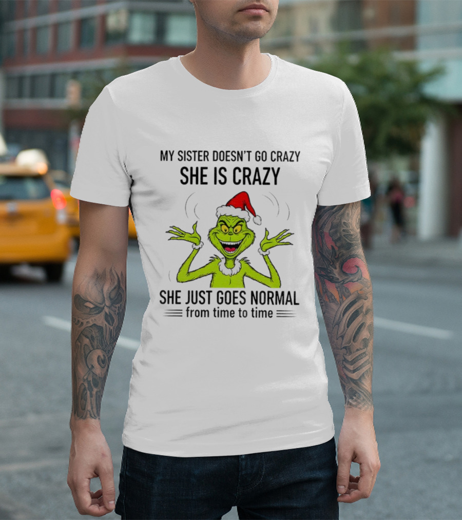 Grinch Santa My Sister Doesn't Go Crazy She's Crazy Christmas Time T-Shirt