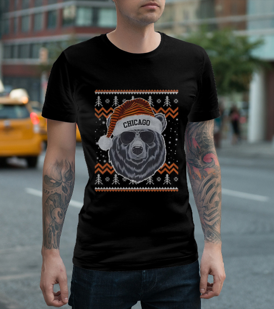 Chicago Bears Santa Hat Christmas NFL Football Game Day T-Shirt