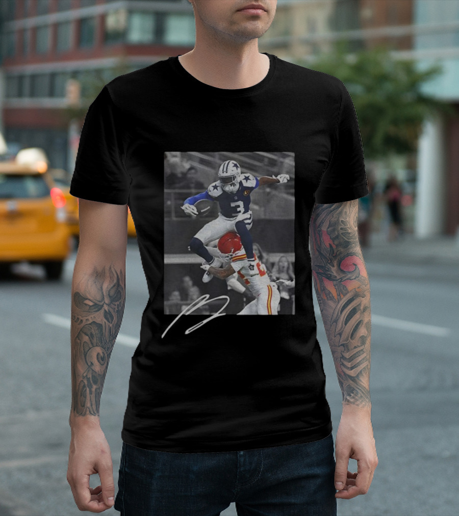 George Pickens Jumping Over Opponent Dallas Cowboys NFL Football Action Signature T-Shirt