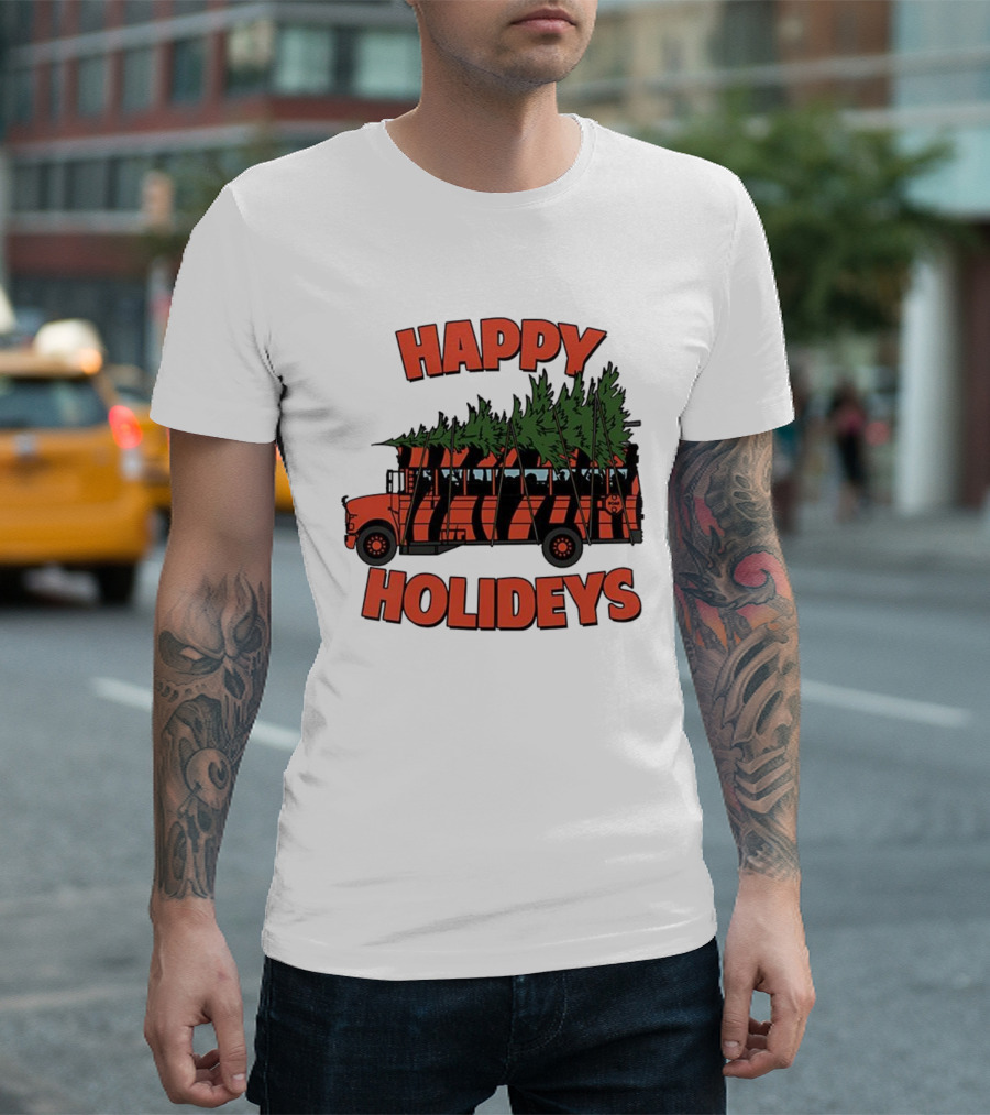 Cincinnati Bengals Happy Holidays Christmas School Bus T-Shirt