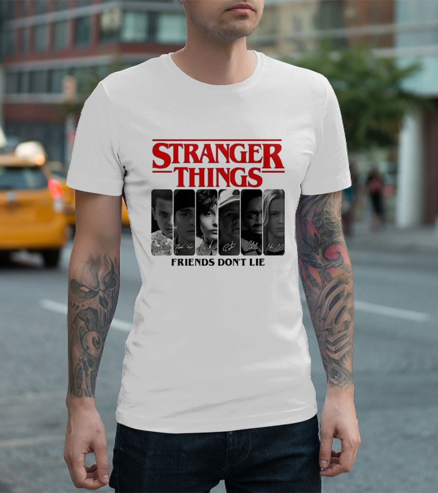 Stranger Things Friends Don’t Lie Signatures Eleven Mike Dustin Lucas Max T-Shirt