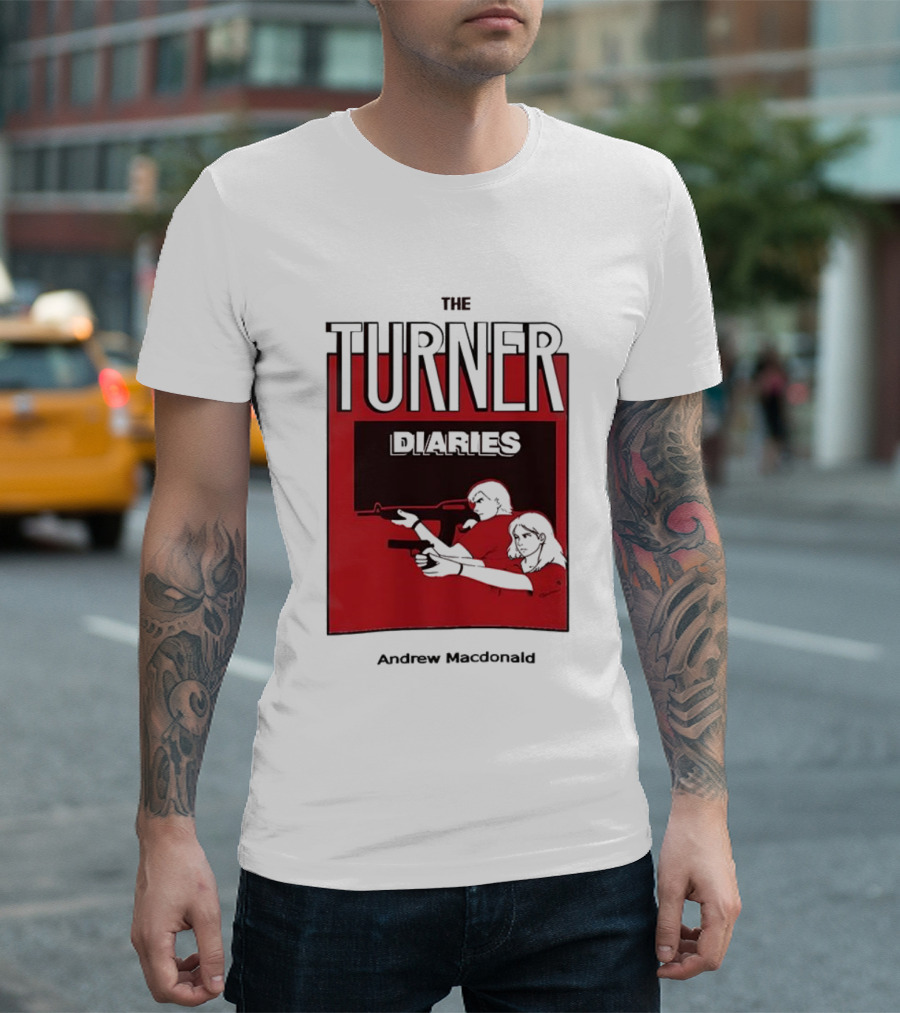 The Turner Diaries Andrew Macdonald Red Cover Art With Figures And Weapon T-Shirt