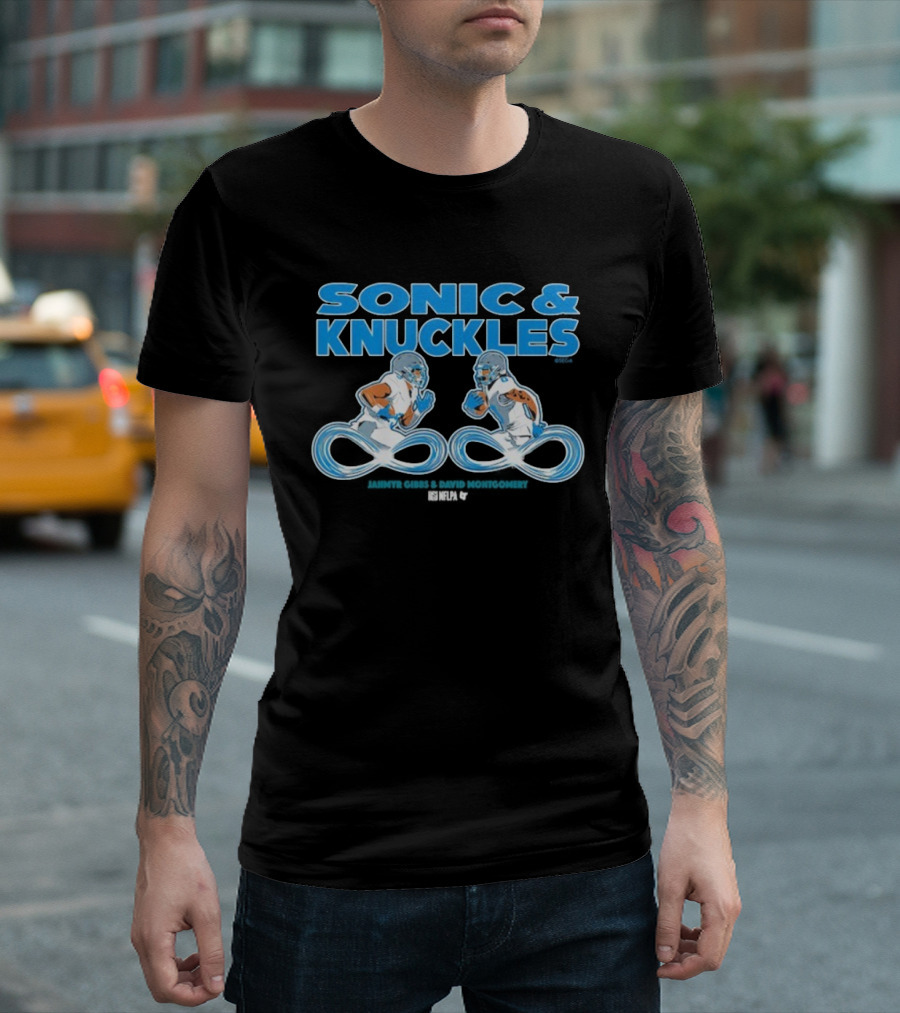 Sega Sonic And Knuckles Jahmyr Gibbs And David Montgomery Football Crossover T-Shirt