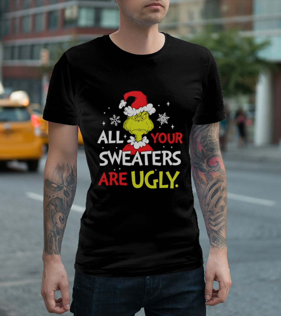 Grinch All Your Sweaters Are Ugly Christmas Santa Hat T-Shirt