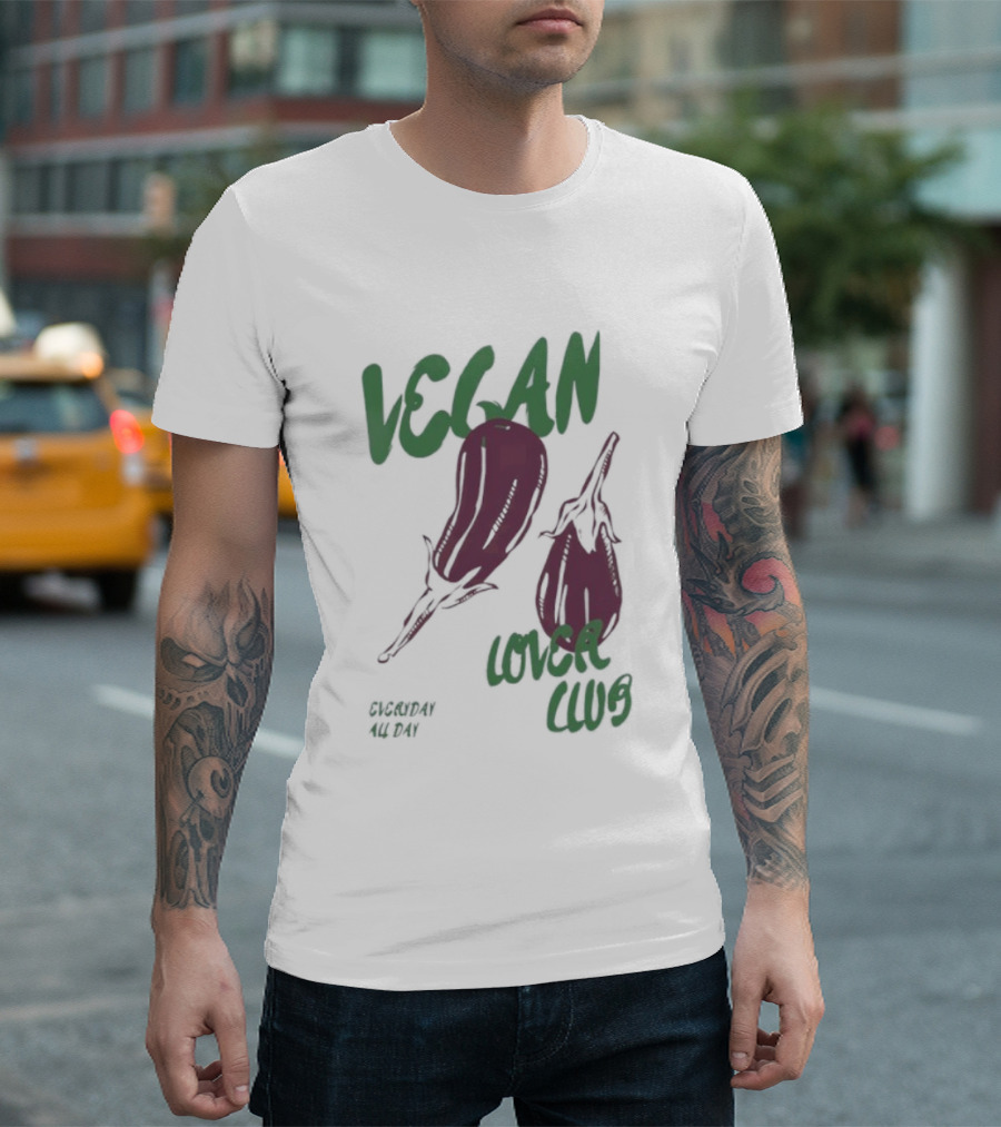 Vegan Love Club Everyday All Day Eggplant Illustration T-Shirt