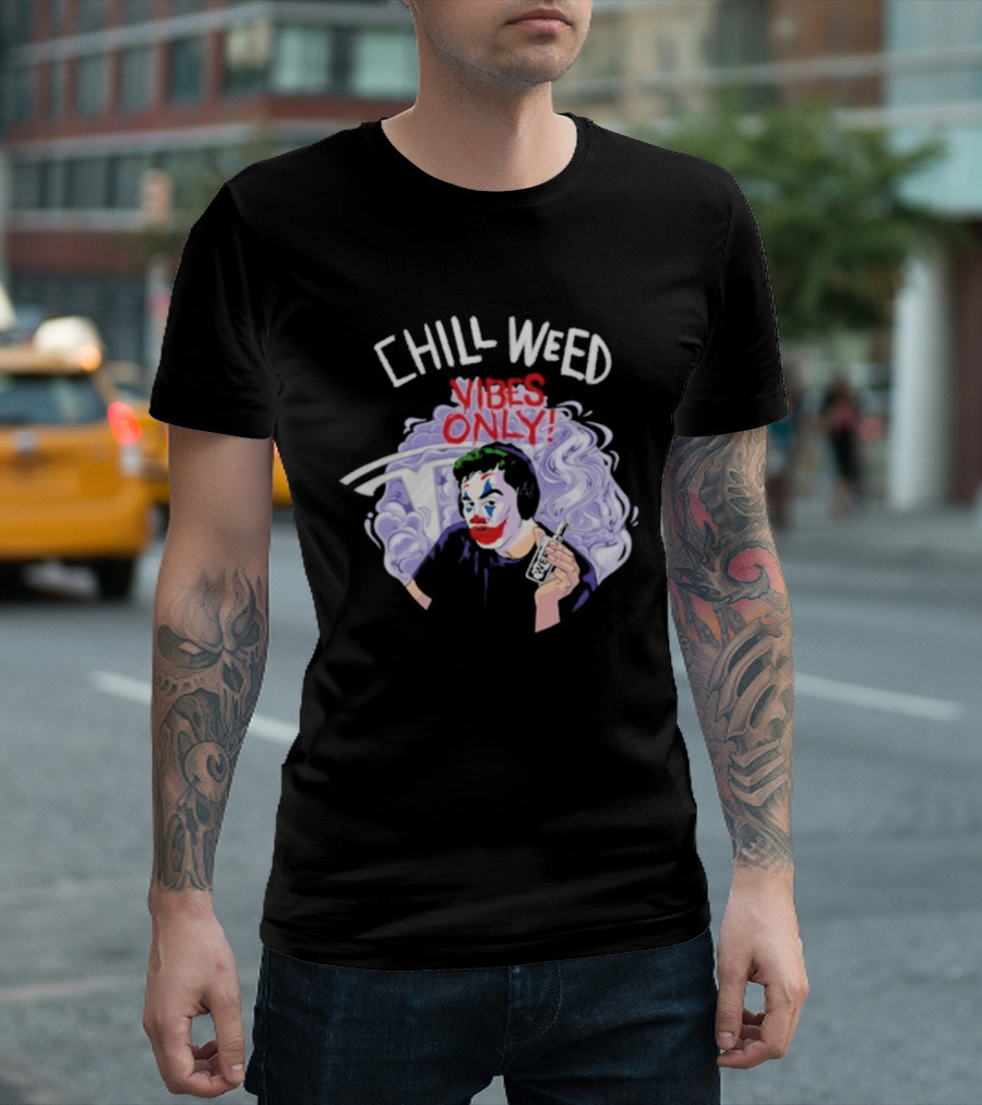 Chill Weed Vibes Only Joker Holding Tesla Symbol Smoke Art T-Shirt
