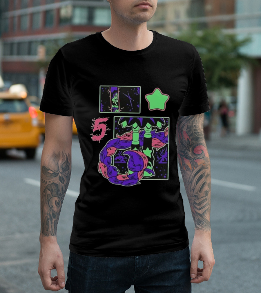 Poppy Theory Neon Star Braided Hair Cosmic Number 5 T-Shirt
