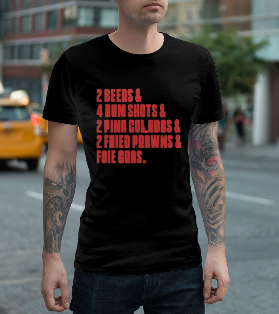 2 Beers 4 Rum Shots 2 Pina Coladas 2 Fried Prawns And Foie Gras Last Meal From The Sopranos T-Shirt