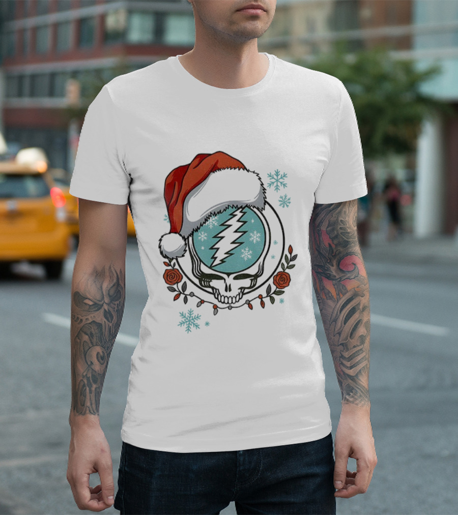 Grateful Dead Steal Your Face Santa Hat Christmas Roses Snowflakes T-Shirt