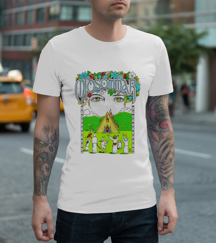 Midsommar Eyes Pyramid Fire Ceremony Illustration T-Shirt