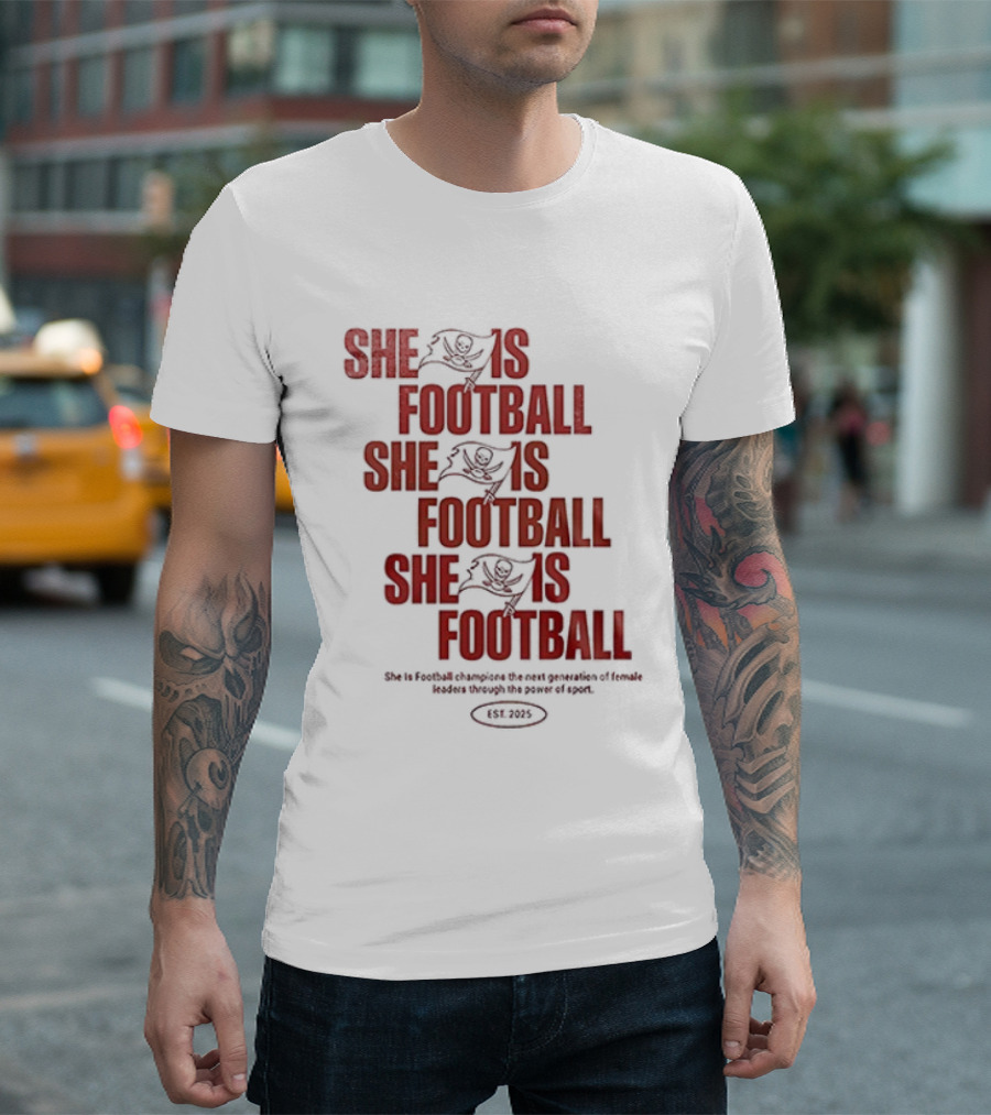 Tampa Bay Buccaneers She Is Football Repeating Text T-Shirt