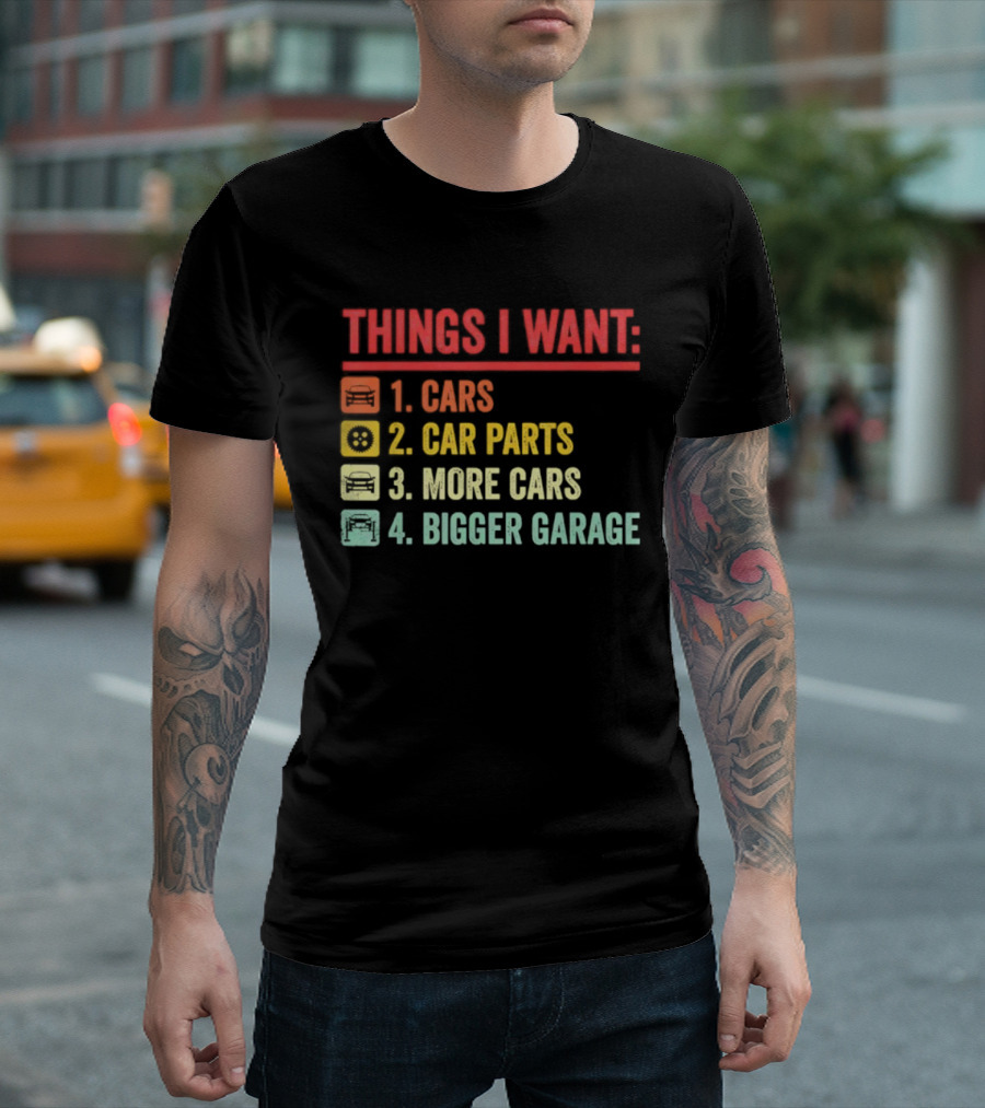 Things I Want Cars Car Parts More Cars Bigger Garage T-Shirt