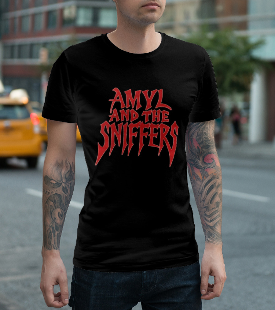 Amyl And The Sniffers Red Spiked Lettering Band Name Graphic T-Shirt