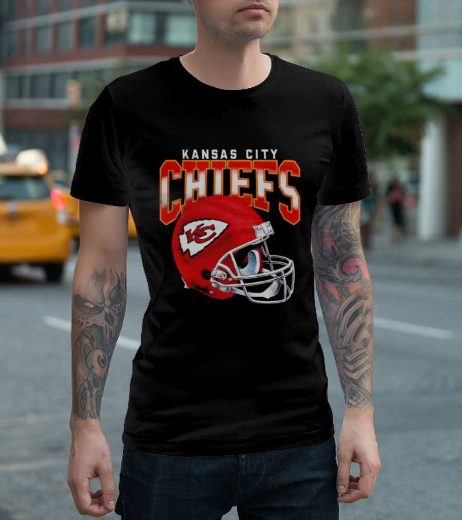 Kansas City Chiefs Red Helmet Gradient Football Icon Chiefs T-shirt — on-model street pose, front view.