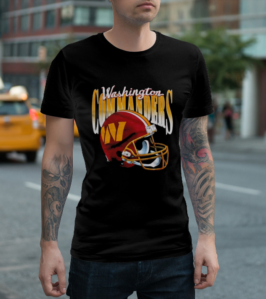 Washington Commanders Gradient Helmet Retro Style Red Yellow W T-Shirt