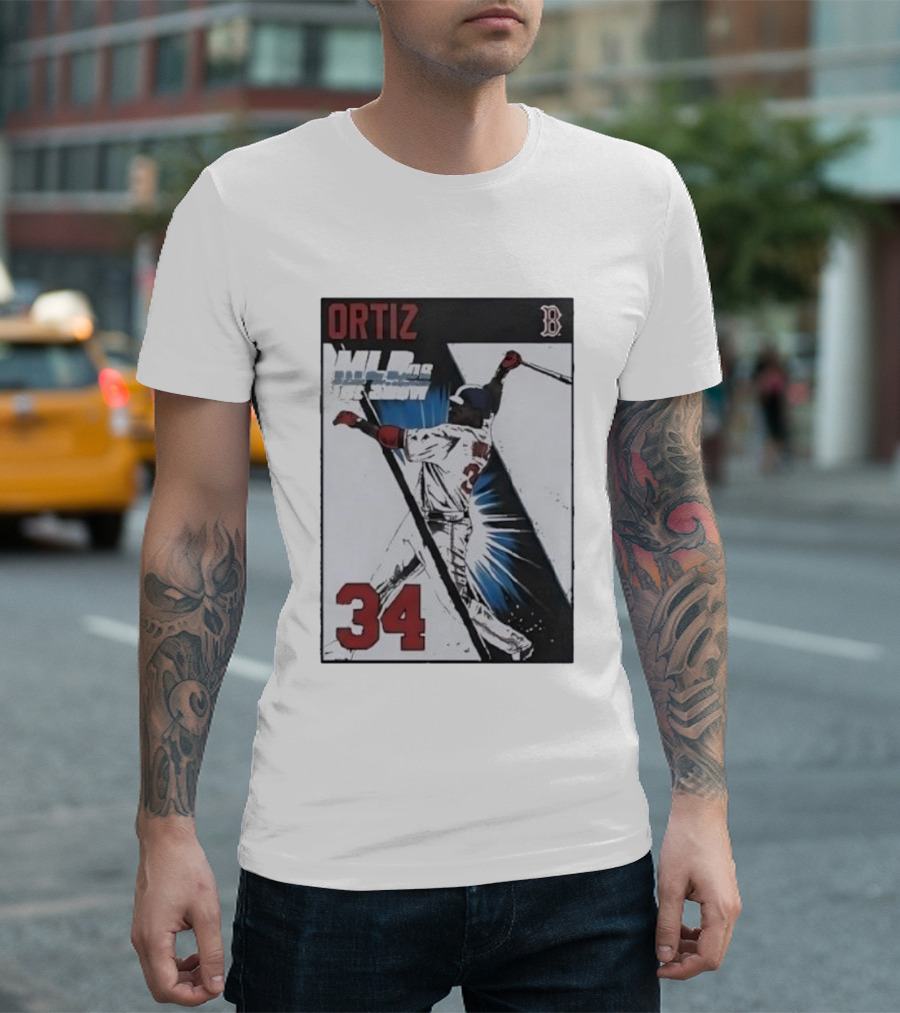 David Ortiz 34 MLB The Show 06 Cover Boston Red Sox Iconic Baseball Legend T-shirt — on-model standing pose, front view.