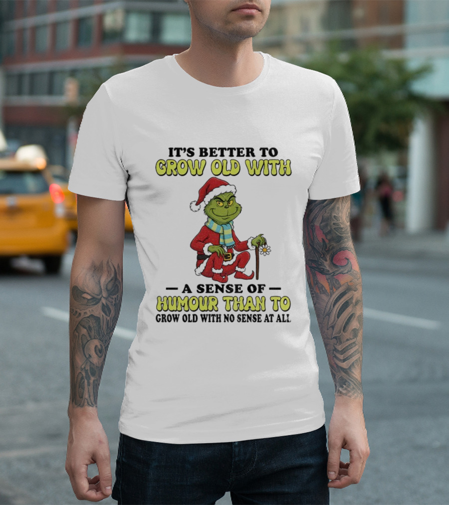 Grow Old With Humour Grinch Santa Hat Christmas Wisdom T-Shirt