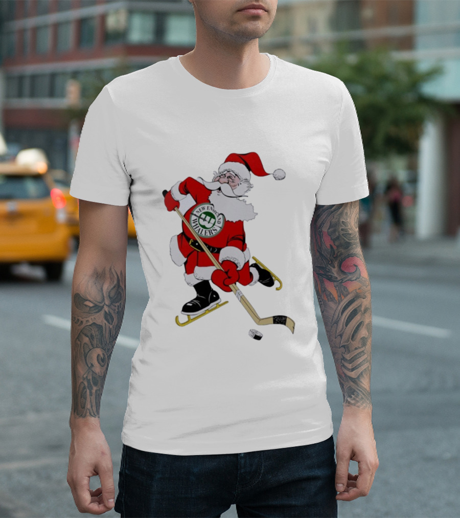 New England Whalers Santa Christmas Hockey Skating Holiday T-Shirt