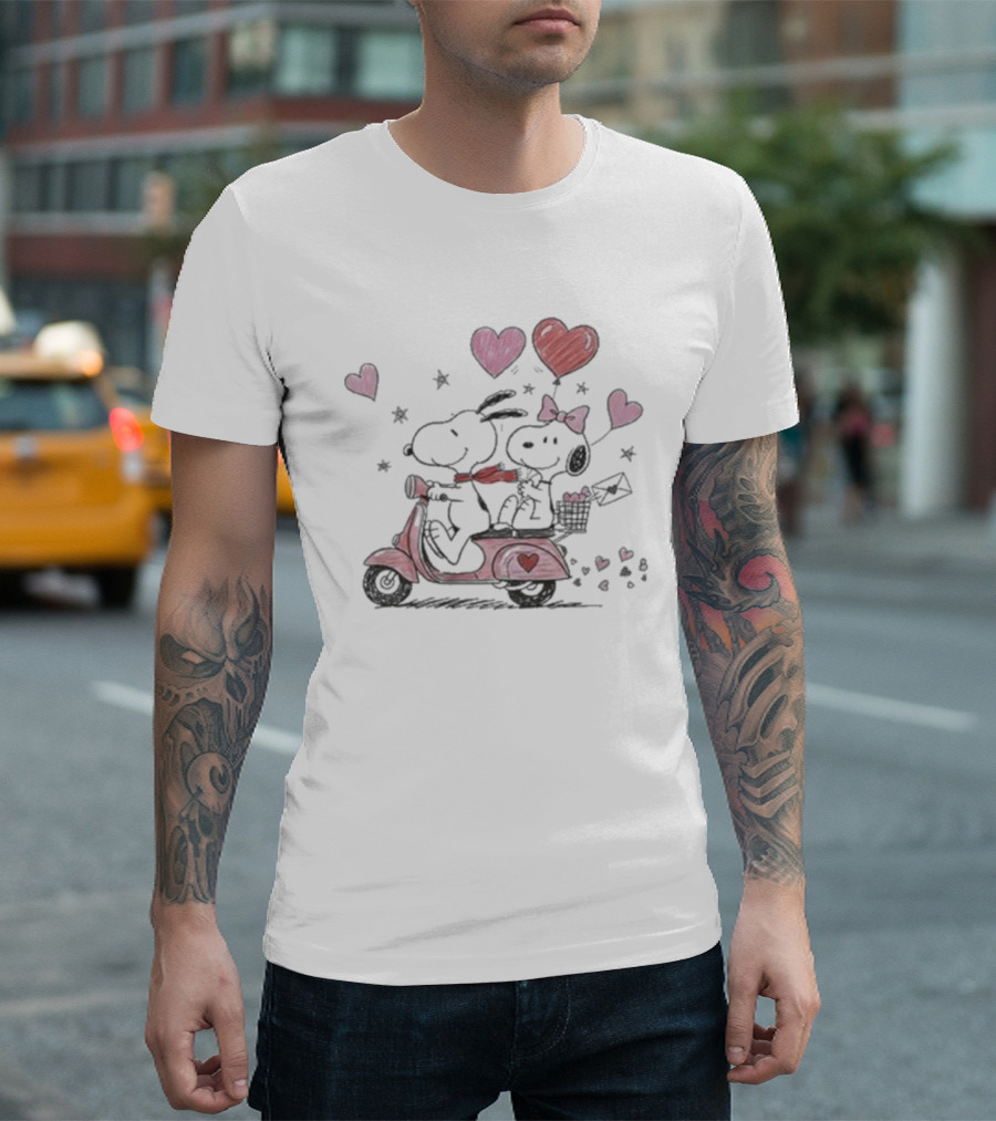 Snoopy Peanuts Valentine's Day Hearts Romantic Scooter Celebration T-Shirt