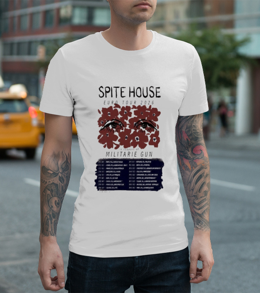 Spite House Militärie Gun Euro Tour 2026 Eyes And Flowers T-Shirt