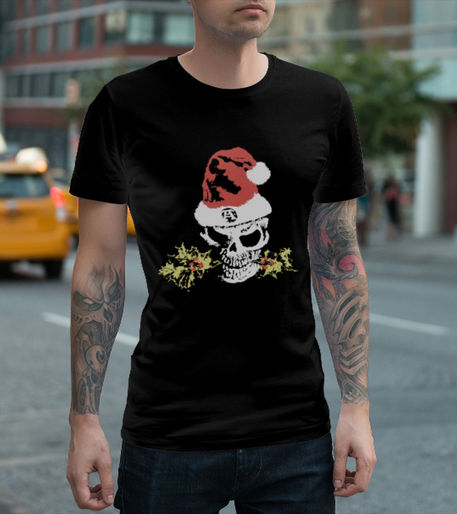 Alchemist Christmas Skull Santa Hat Holly Wreath T-Shirt