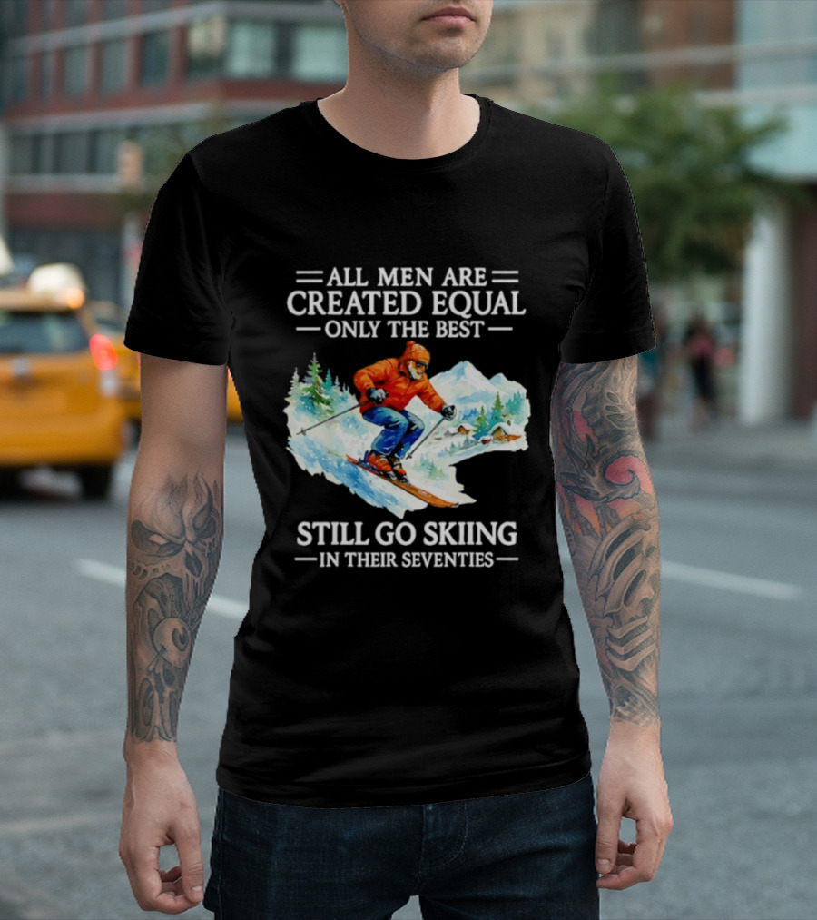 All Men Are Created Equal Only The Best Still Go Skiing In Their Seventies T-Shirt