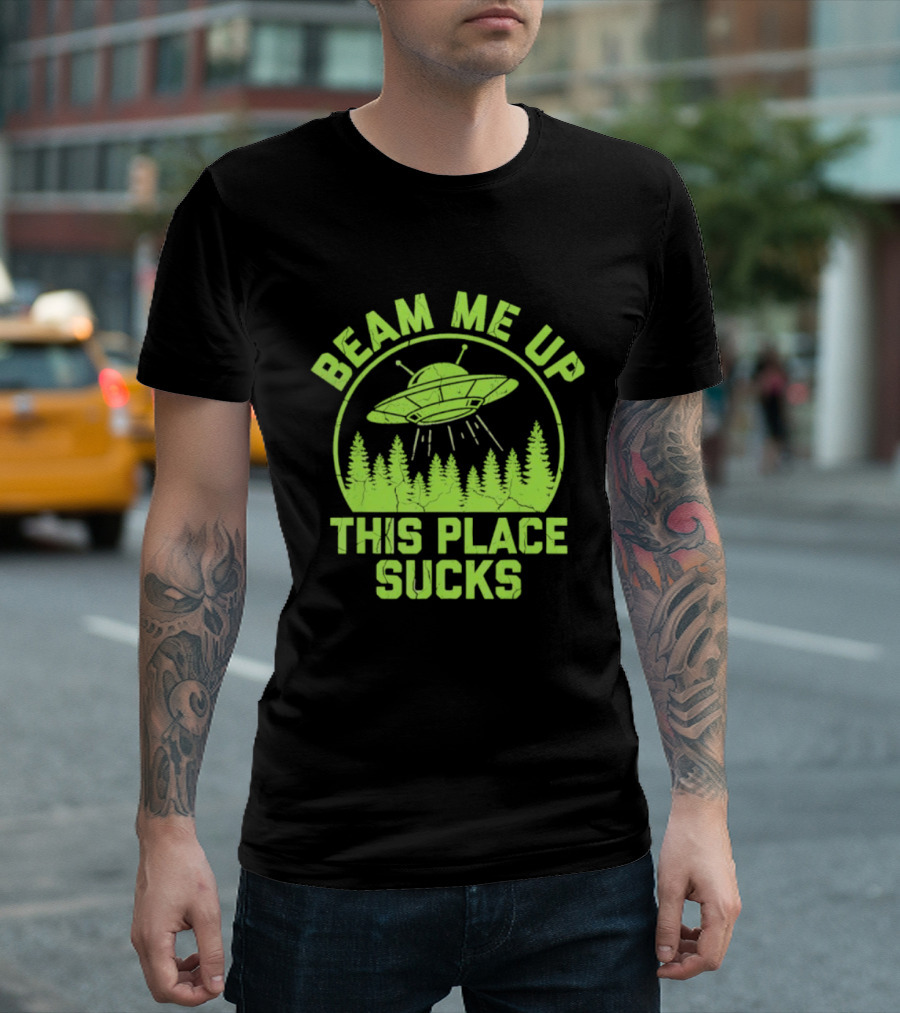 Beam Me Up This Place Sucks Alien UFO Forest T-Shirt