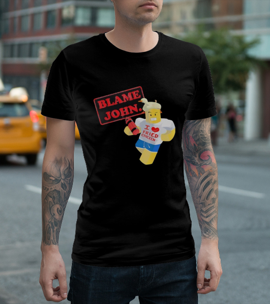 Blame John Roblox I Love Fried Chicken Meme With Duck Hat T-Shirt