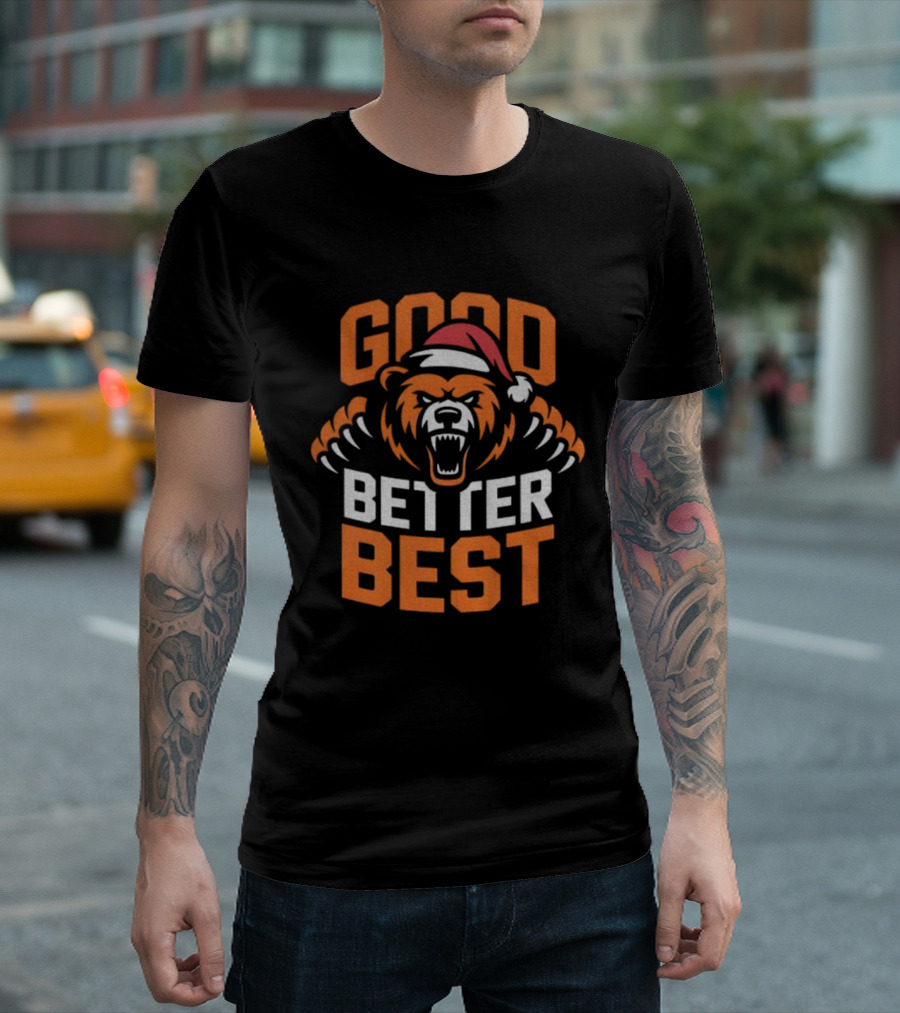 Good Better Best Chicago Bear Mascot Santa Hat Christmas Vintage T-Shirt