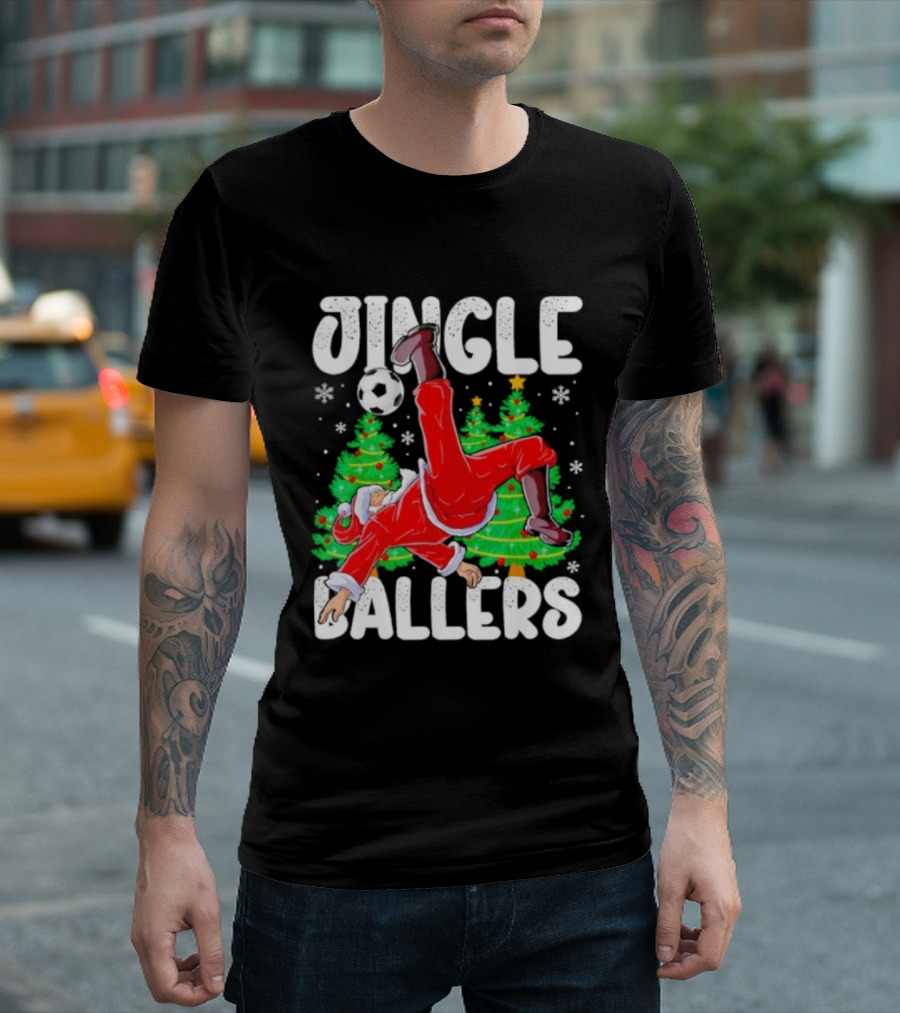 Jingle Ballers Santa Football Christmas Soccer Tree T-Shirt