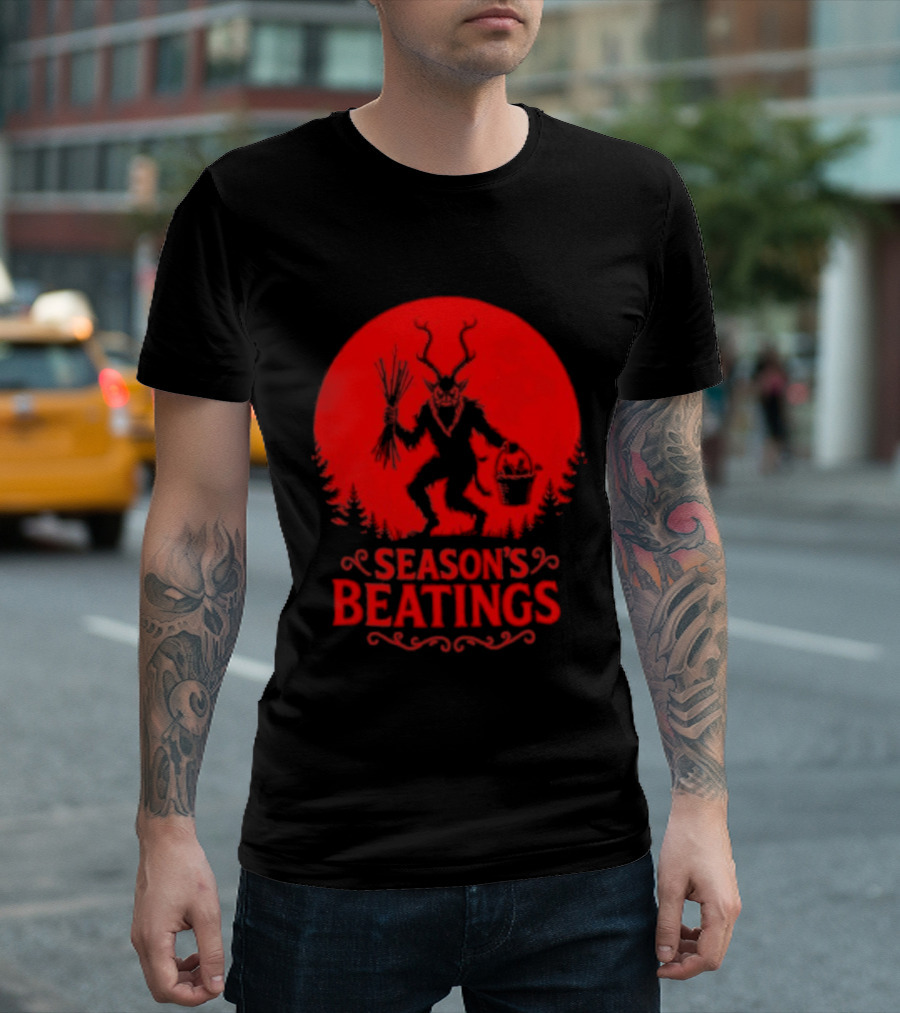 Krampus Season’s Beatings Gothic Christmas Horror T-Shirt