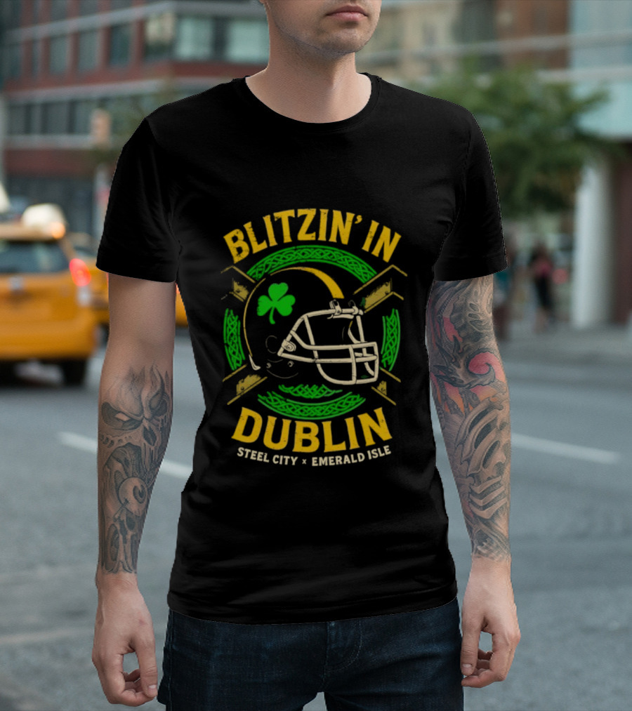 Blitzin’ In Dublin Steel City Emerald Isle Helmet Shamrock T-Shirt