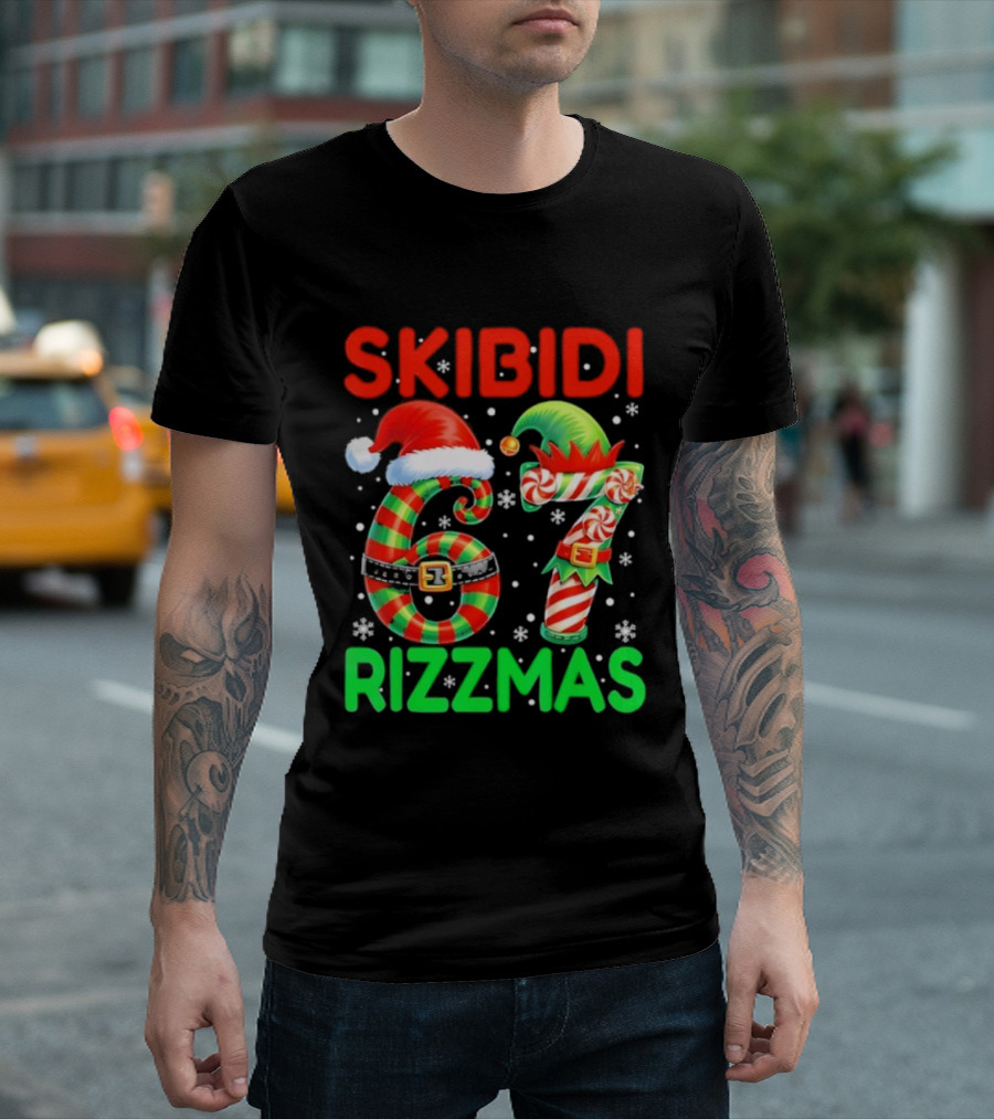 Skibidi 67 Rizzmas Funny Christmas Elf Candy Cane Holiday Meme T-Shirt