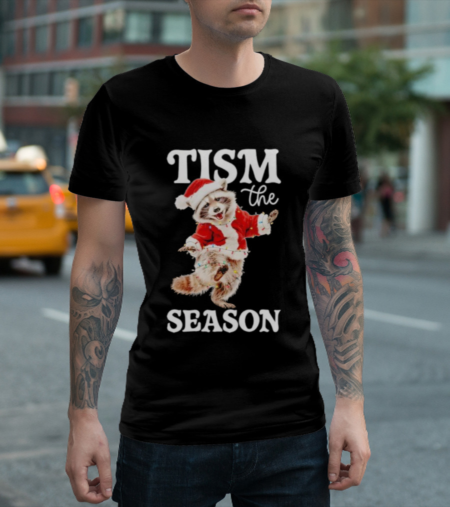 Tism The Season Raccoon Santa Christmas Autism Awareness T-Shirt