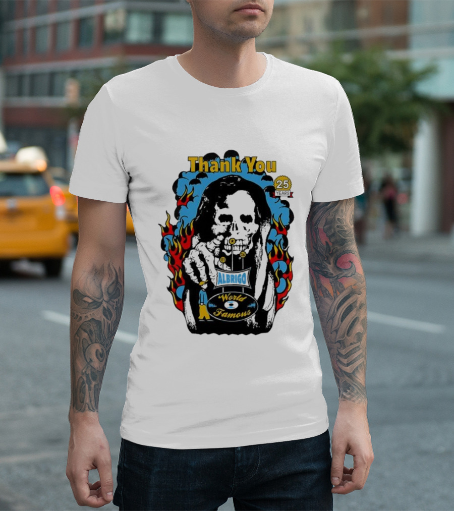 Daniel Albrigo World Famous Celebrating 25 Years Thank You Fire Design T-Shirt