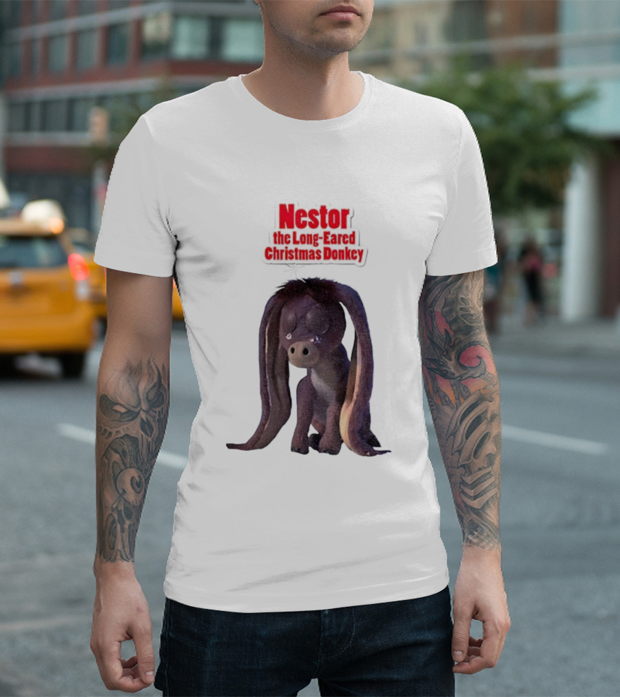 Nestor The Long Eared Christmas Donkey Character Illustration T-Shirt