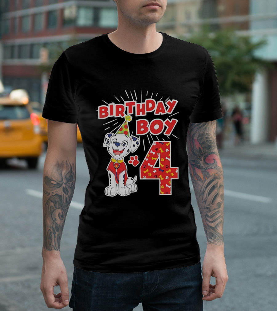 4th Birthday Boy Celebration With Cute Pup And Party Hat T-Shirt