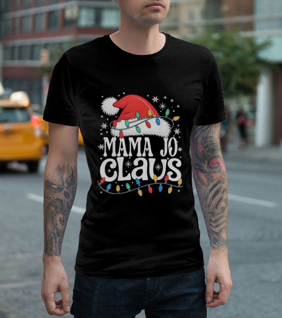 Mama Jo Claus Christmas Hat With Holiday Lights T-Shirt