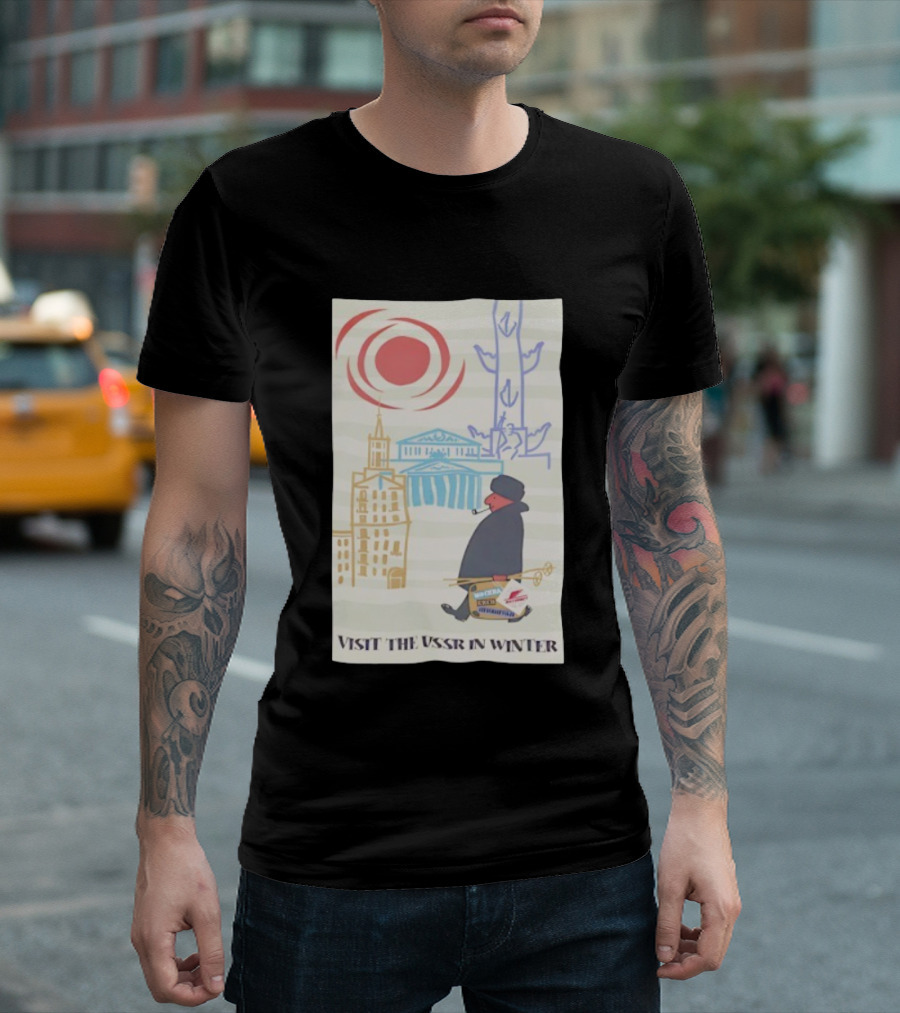 Visit The USSR In Winter Soviet Travel Propaganda Red Sun Russian Buildings Holiday Promotion T-Shirt