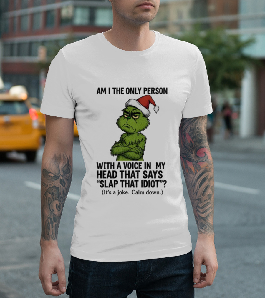 Grinch Santa Hat Am I The Only Person With A Voice In My Head That Says Slap That Idiot Christmas T-Shirt