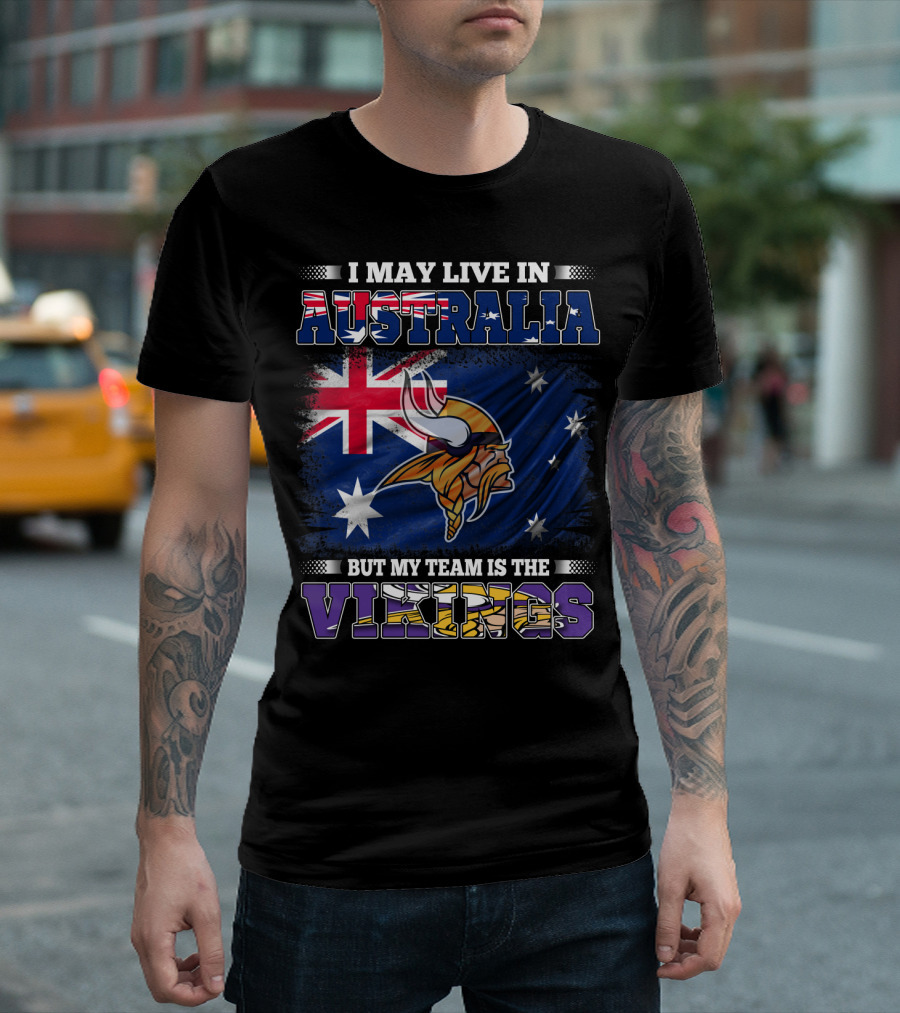 I May Live In Australia But My Team Is The Vikings Nordic Warrior And Australian Flag Fusion T-Shirt