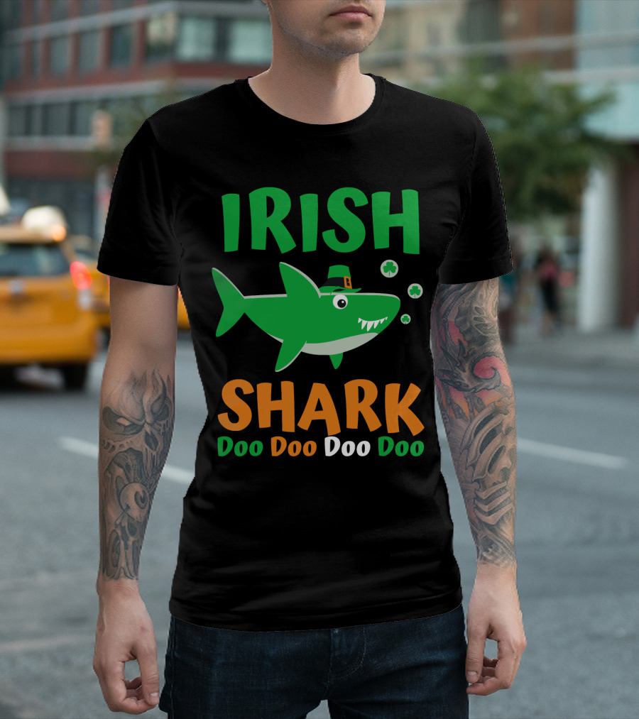 Irish Shark Doo Doo Doo St. Patrick's Day Fun With Leprechaun Hat And Shamrocks T-Shirt