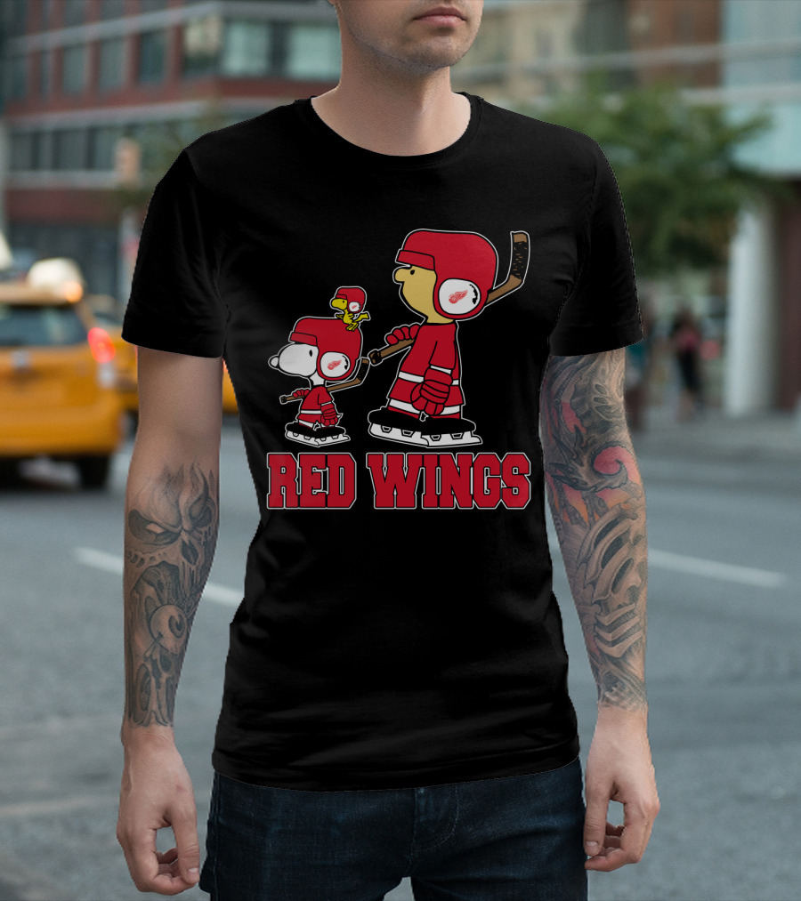 Snoopy And Detroit Red Wings Ice Hockey Fan Team-Up T-Shirt