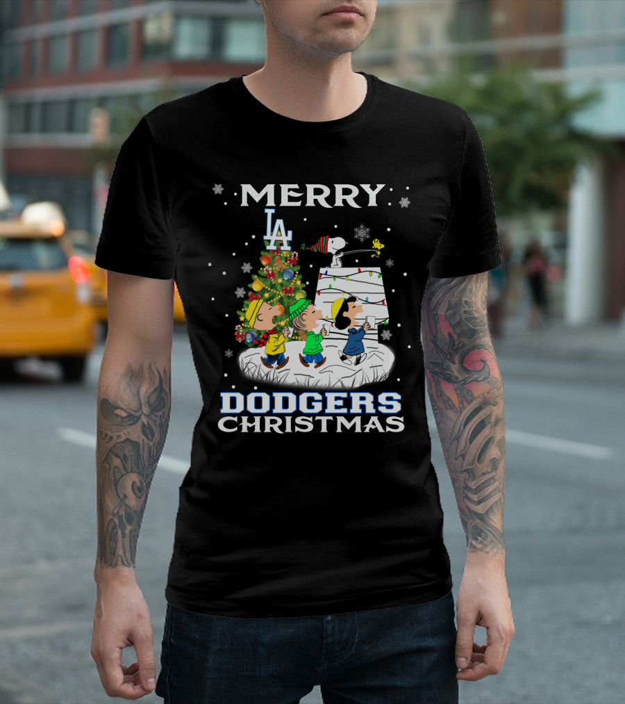 Merry Dodgers Christmas Snoopy And Friends Celebrate With La Dodgers Theme T-Shirt