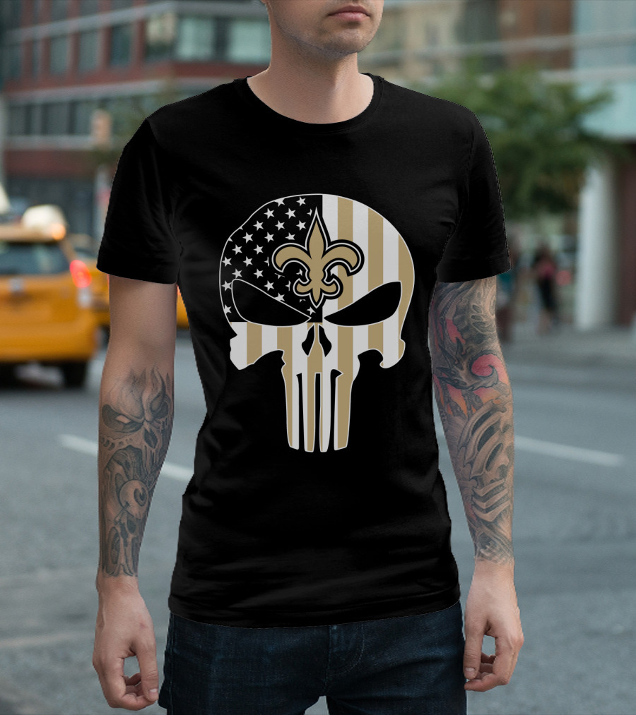 Saints Punisher Skull American Flag Fleur-De-Lis T-Shirt
