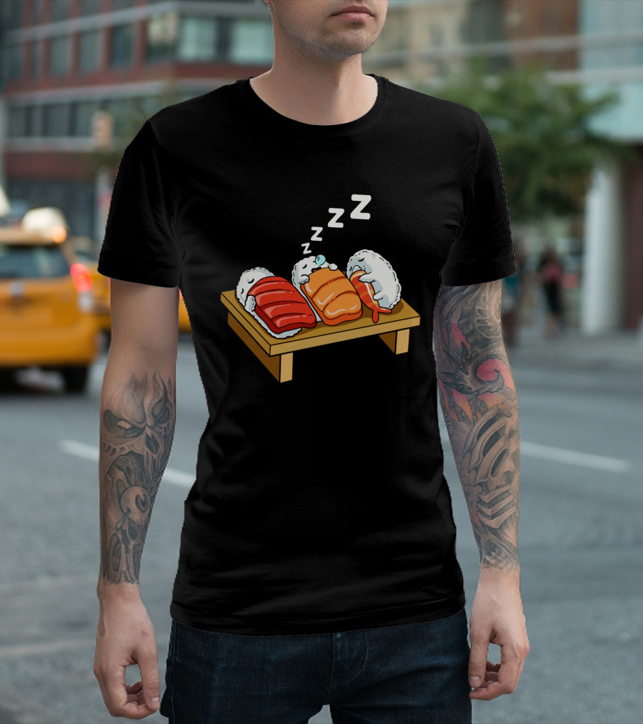 Sushi Sleep Zzz Cartoon Sushi Nigiri On Wooden Board With Sleeping Z's T-Shirt