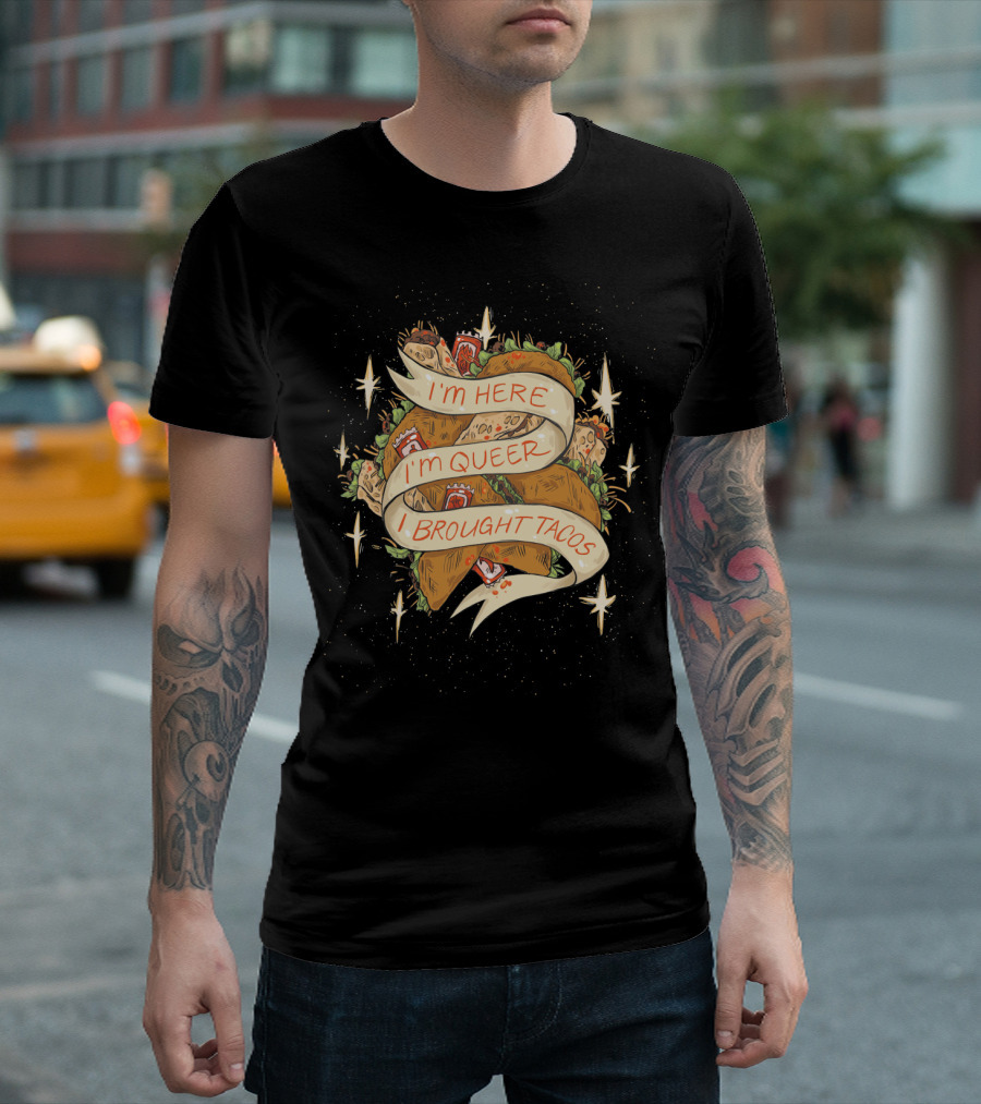 I'm Here I'm Queer I Brought Tacos Stars T-Shirt