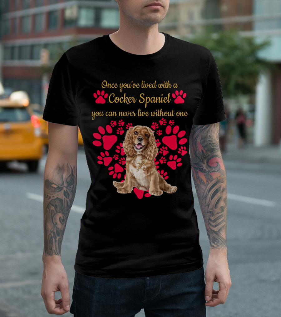 Once You've Lived With A Cocker Spaniel You Can Never Live Without One With Red Paw Prints T-Shirt