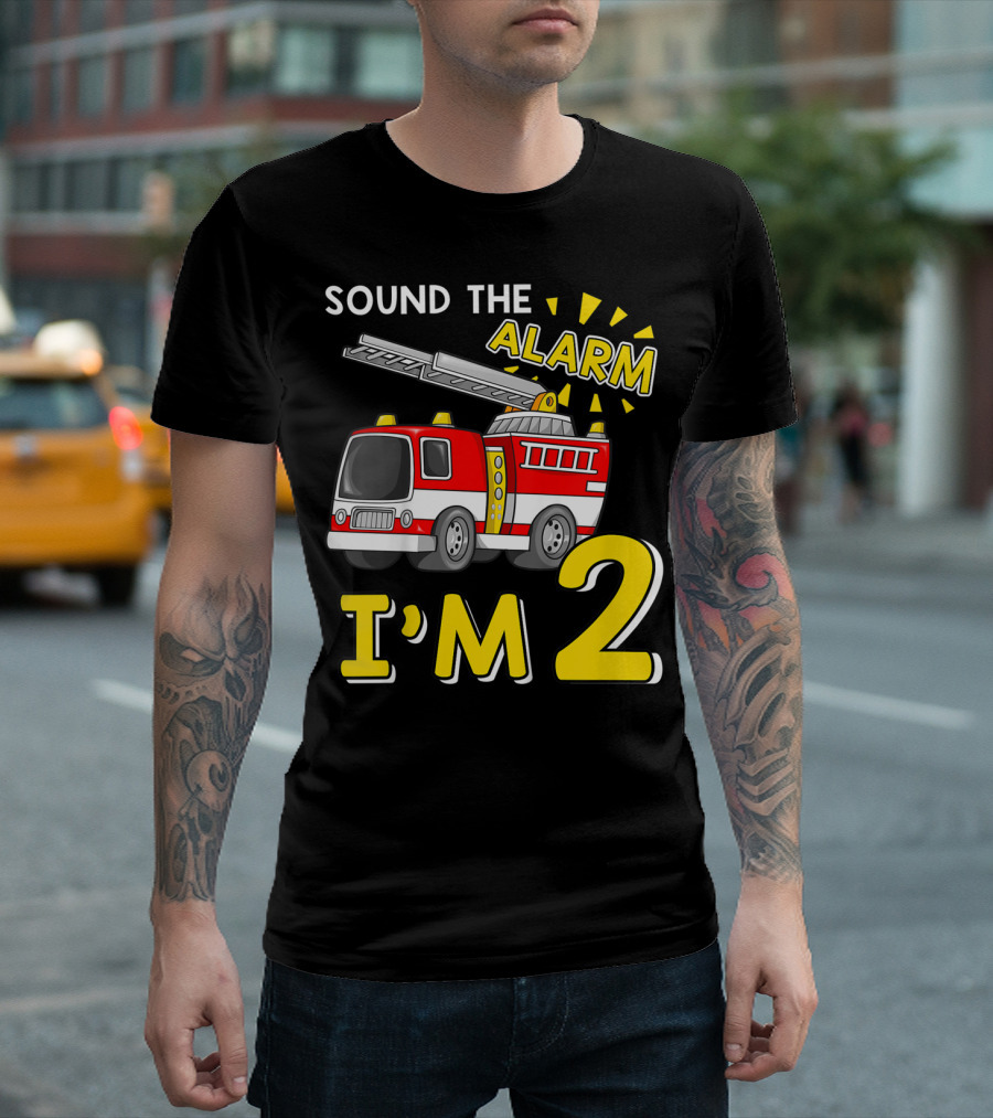 SOUND THE ALARM I'M 2 Fire Truck Kids 2nd Birthday T-Shirt