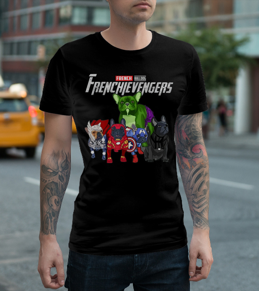 Frenchievengers French Bulldog Superhero Team Funny Dog T-Shirt